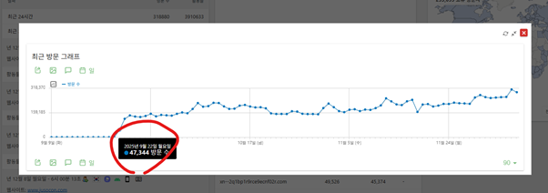 하루방문 3-4만명에서 30만명으로 성장하였습니다.