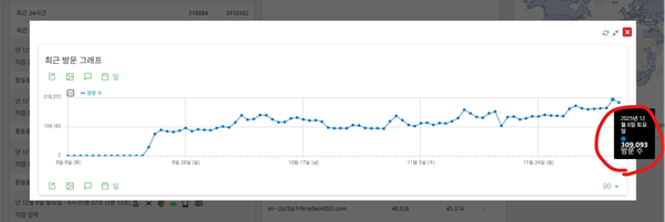 12월8일기준 30만명의 자연검색어 유입양을 유지하고 있습니다.